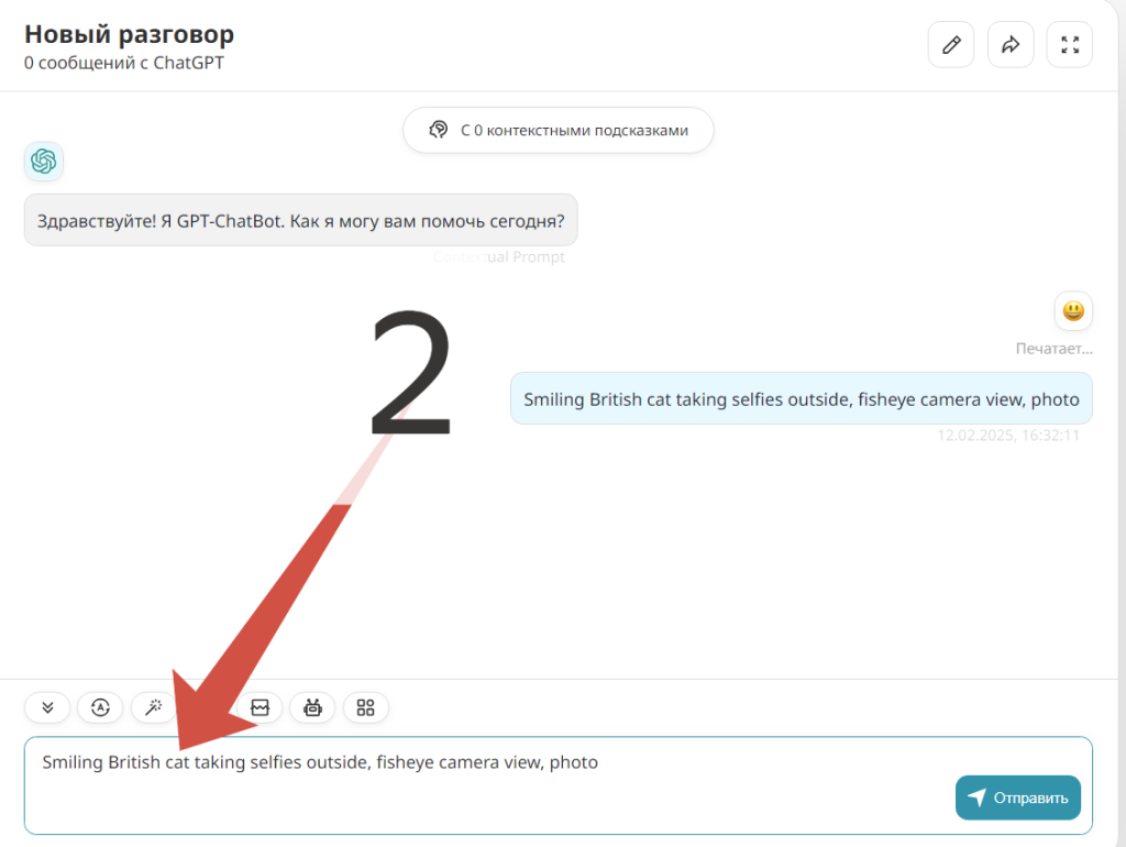 После выбора нужной модели введите в чат подробное описание желаемого изображения. Рекомендуется использовать английский язык, поскольку он обеспечивает более высокую точность и детализацию результата. Пример запроса: